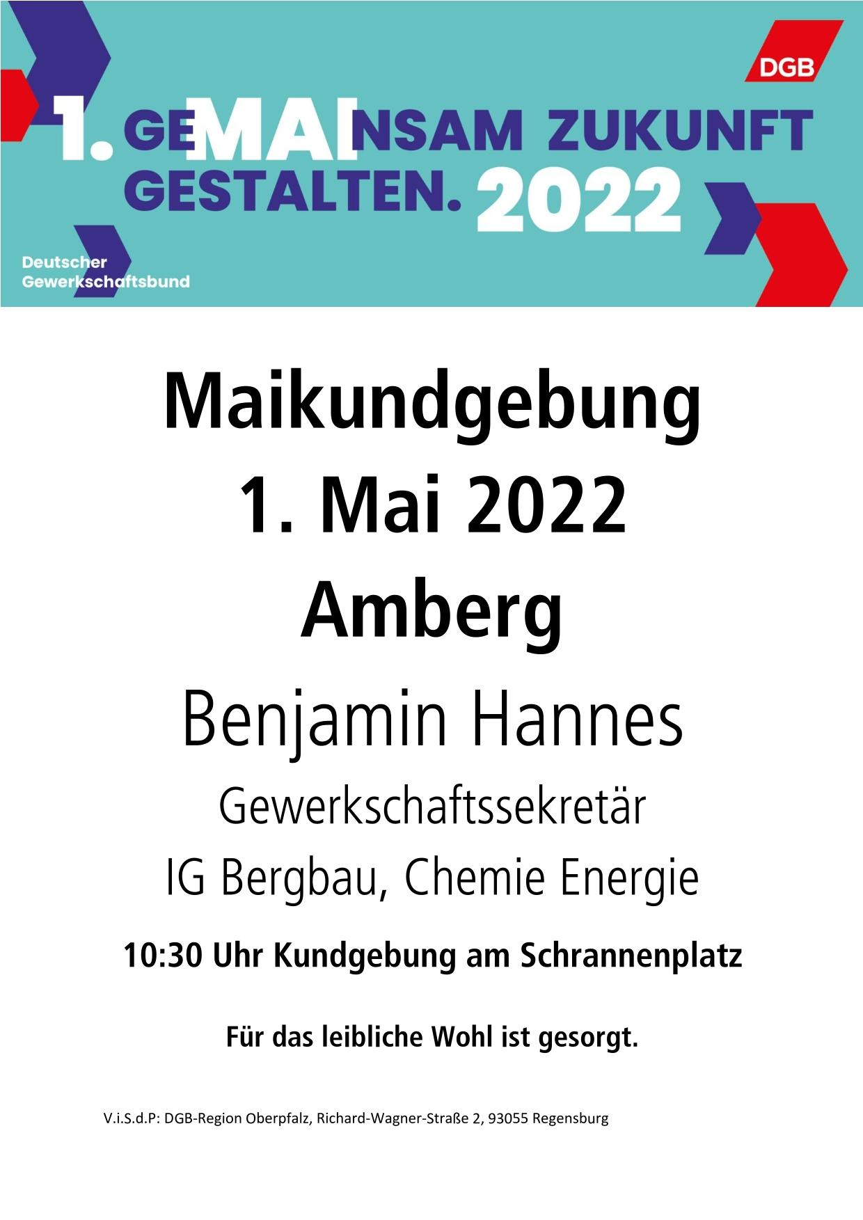 Plakat Maikundgebung Amberg 2022