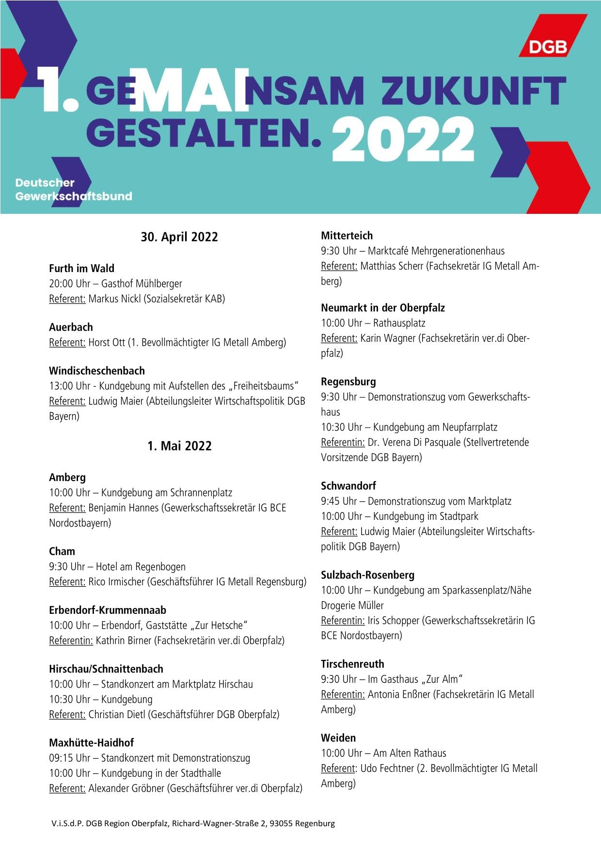 Maiveranstaltungen Oberpfalz 2022