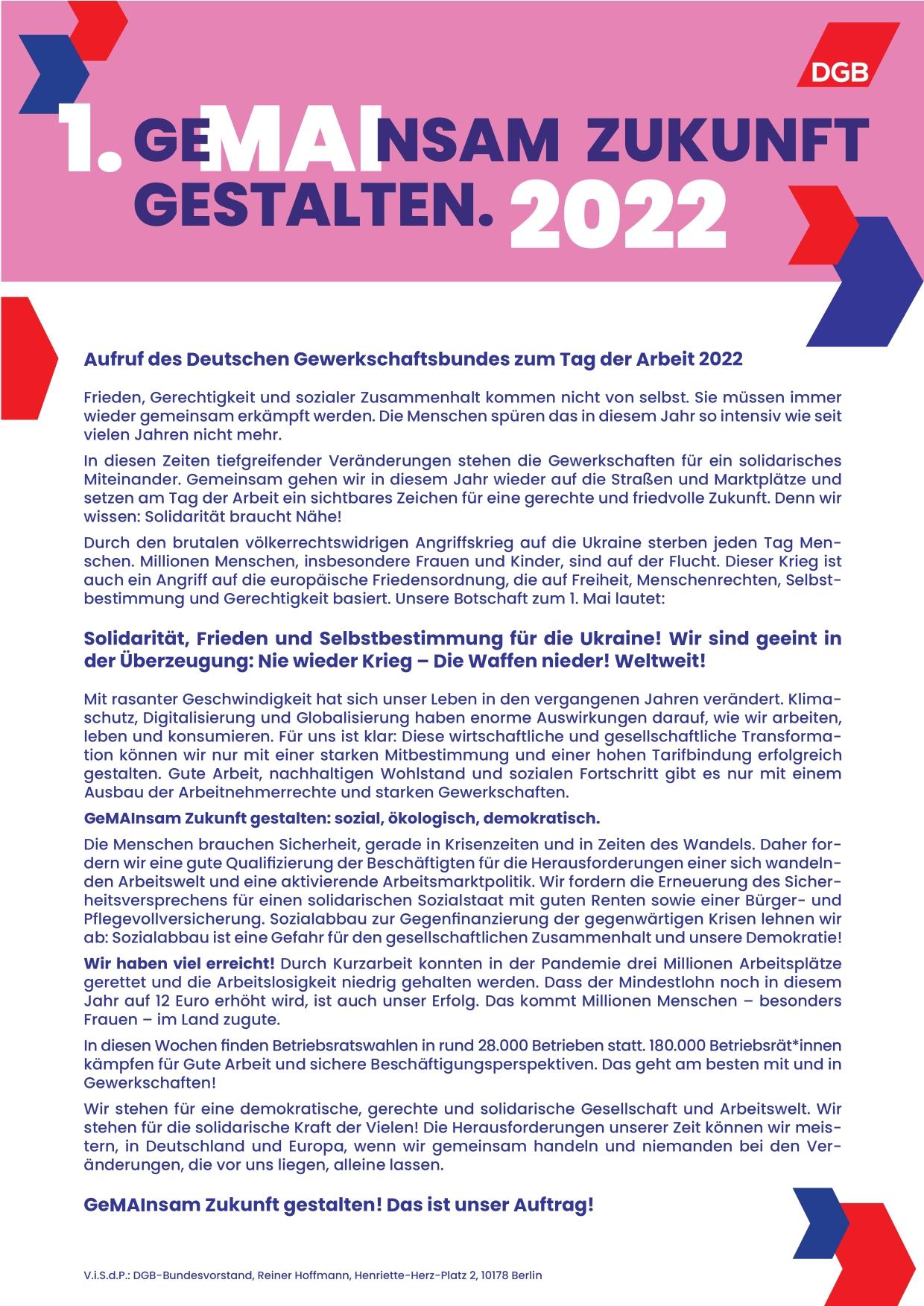 Maiaufruf DGB 2022