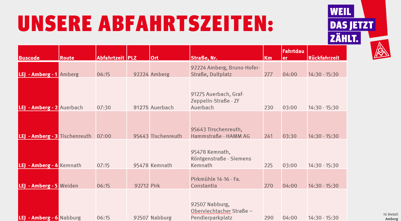 Wir haben für die Geschäftsstelle Amberg 8 Busse bereit gestellt, welche von verschiedenen Standorten aus fahren werden