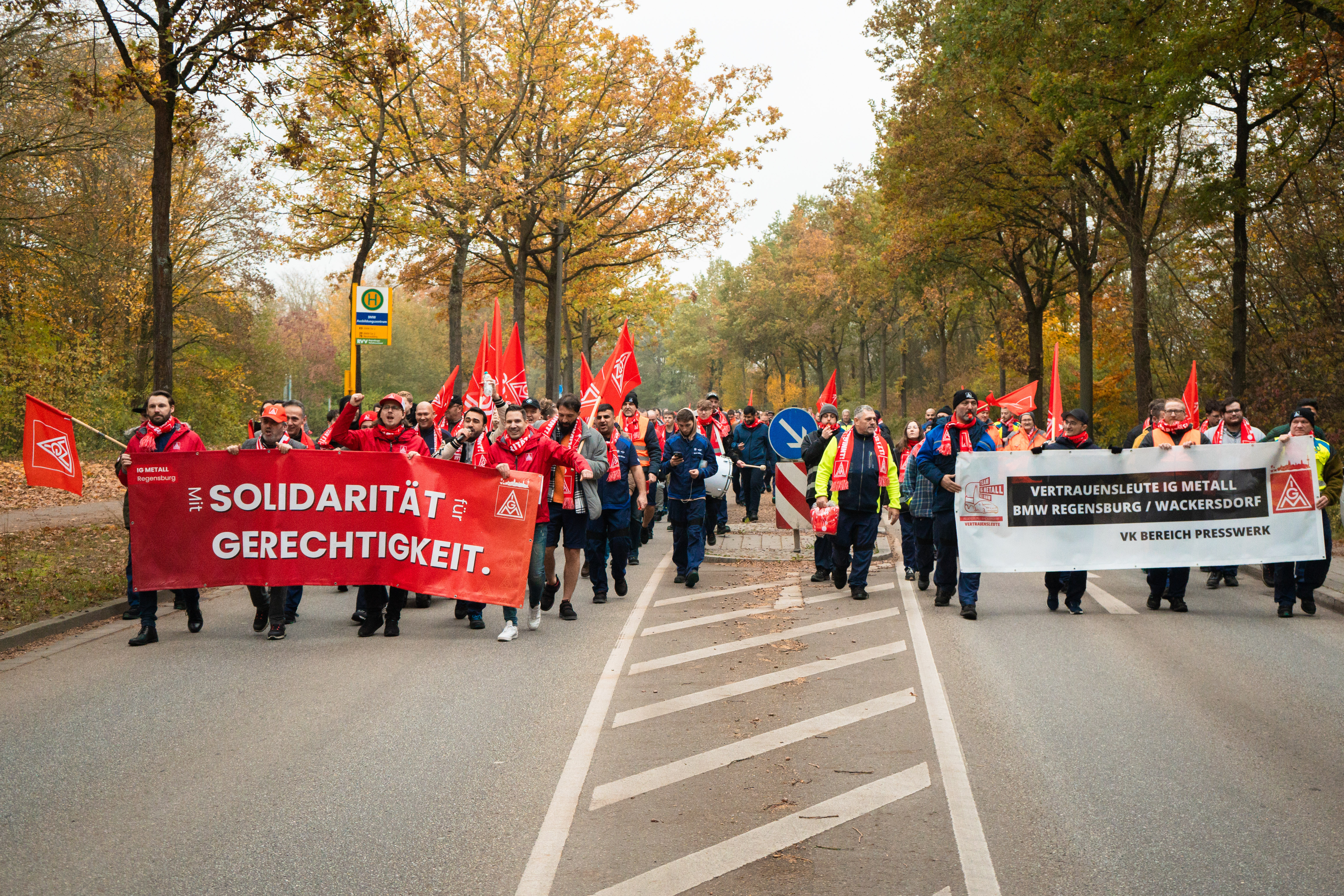 Beschäftigte in 107 bayerischen Betrieben legen Arbeit nieder, 3500 Warnstreikende ziehen durch Nürnberg, Bänder in BMW-Werken Regensburg und Landshut standen still, Audianer greifen in der Nacht ins Geschehen ein. Ott: „Die Unternehmen spüren die Wucht der Solidarität der bayerischen Beschäft